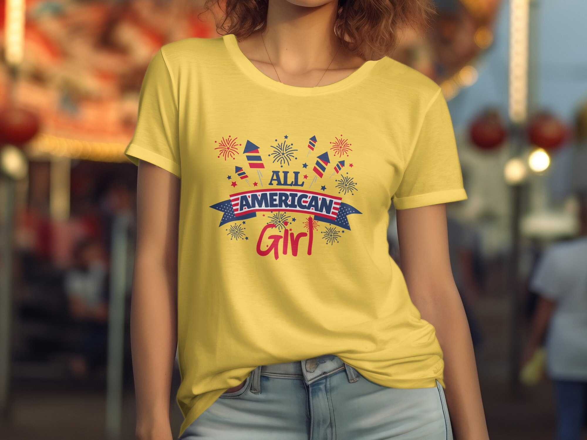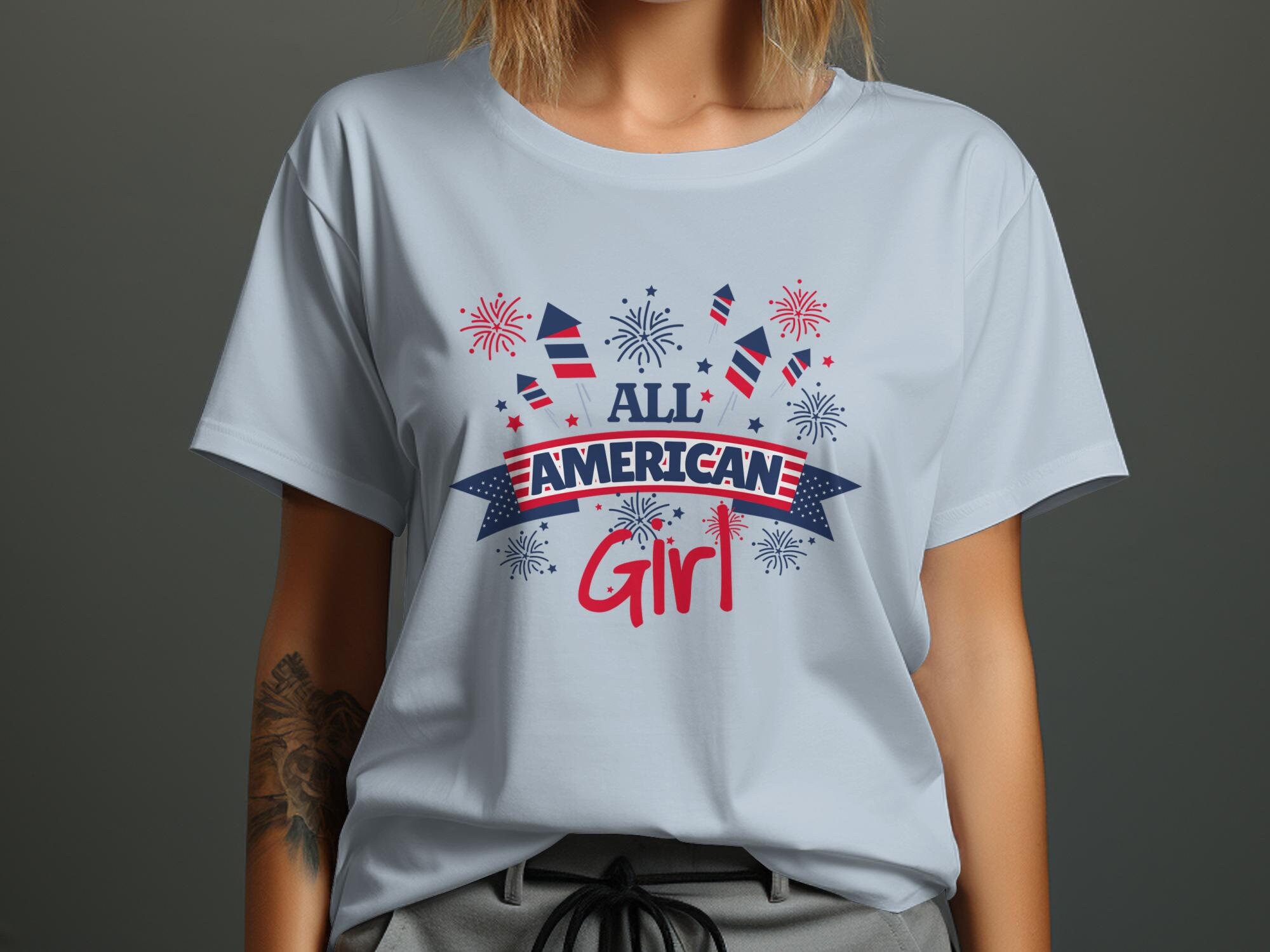 All American Girl T-Shirt, Patriotic Fireworks Shirt, 4th of July Tee, USA Pride Top, Independence Day Clothing, Summer Outfit, Great Gift