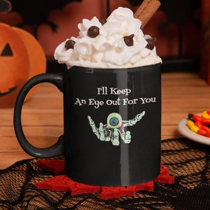 Warm your soul with a nice cuppa out of this glossy black ceramic mug to make that “aaahhh!” morning moment even better. It’s BPA and lead-free, microwave and dishwasher-safe, made of black durable ceramic and available in 11-ounce and 15-ounce sizes. The high-quality sublimation printing makes this black ceramic mug the perfect gift for your true coffee, tea, or hot chocolate lover during the Halloween season.