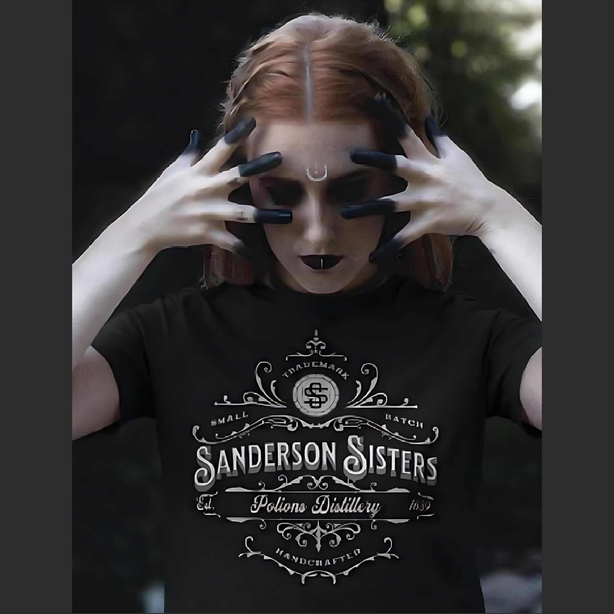 Vintage Style Sanderson Sisters Potions Distillery T-Shirt Witchy Halloween Tee Gothic Graphic Shirt Witch TShirt Spooky Season Shirt