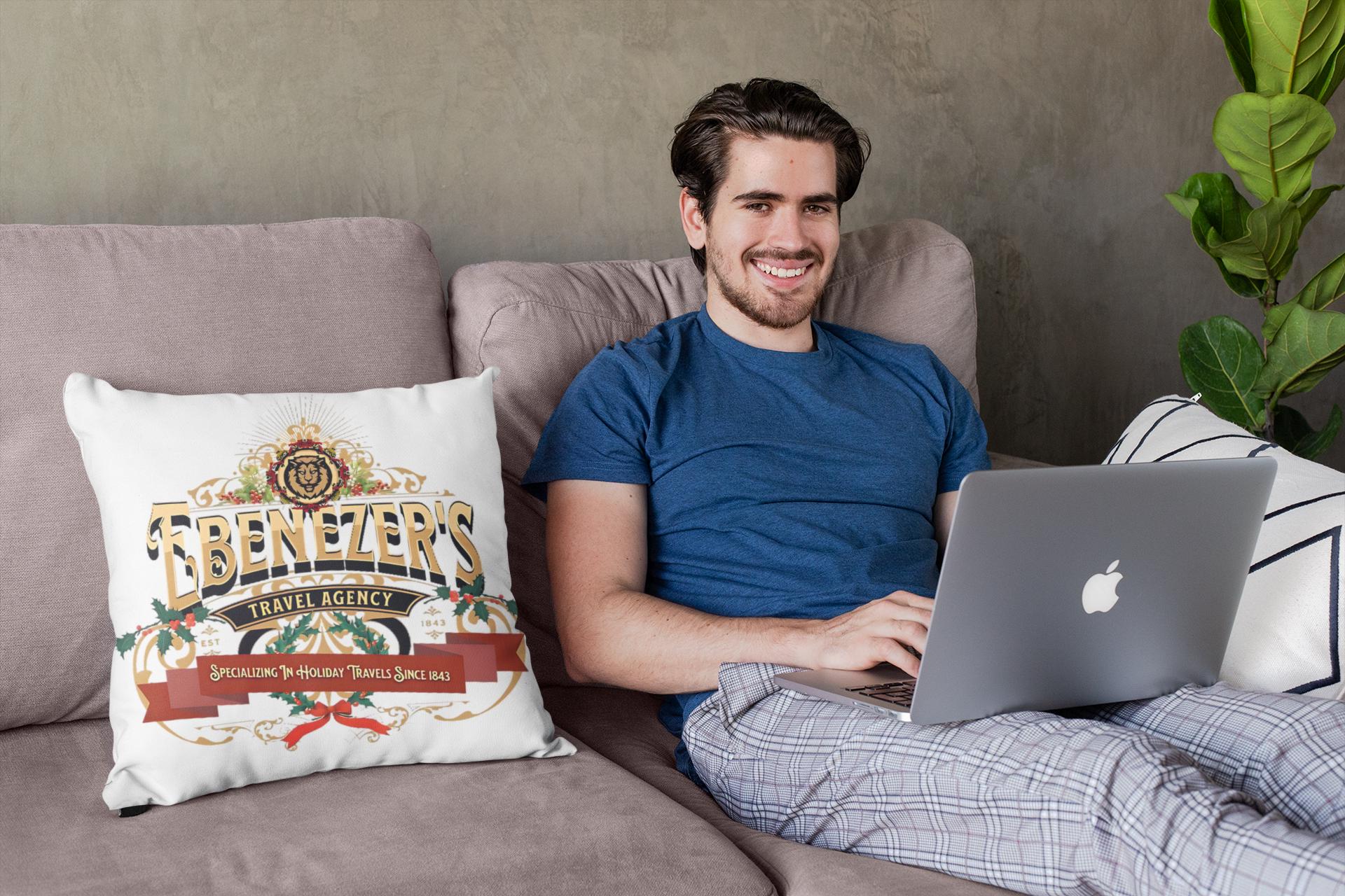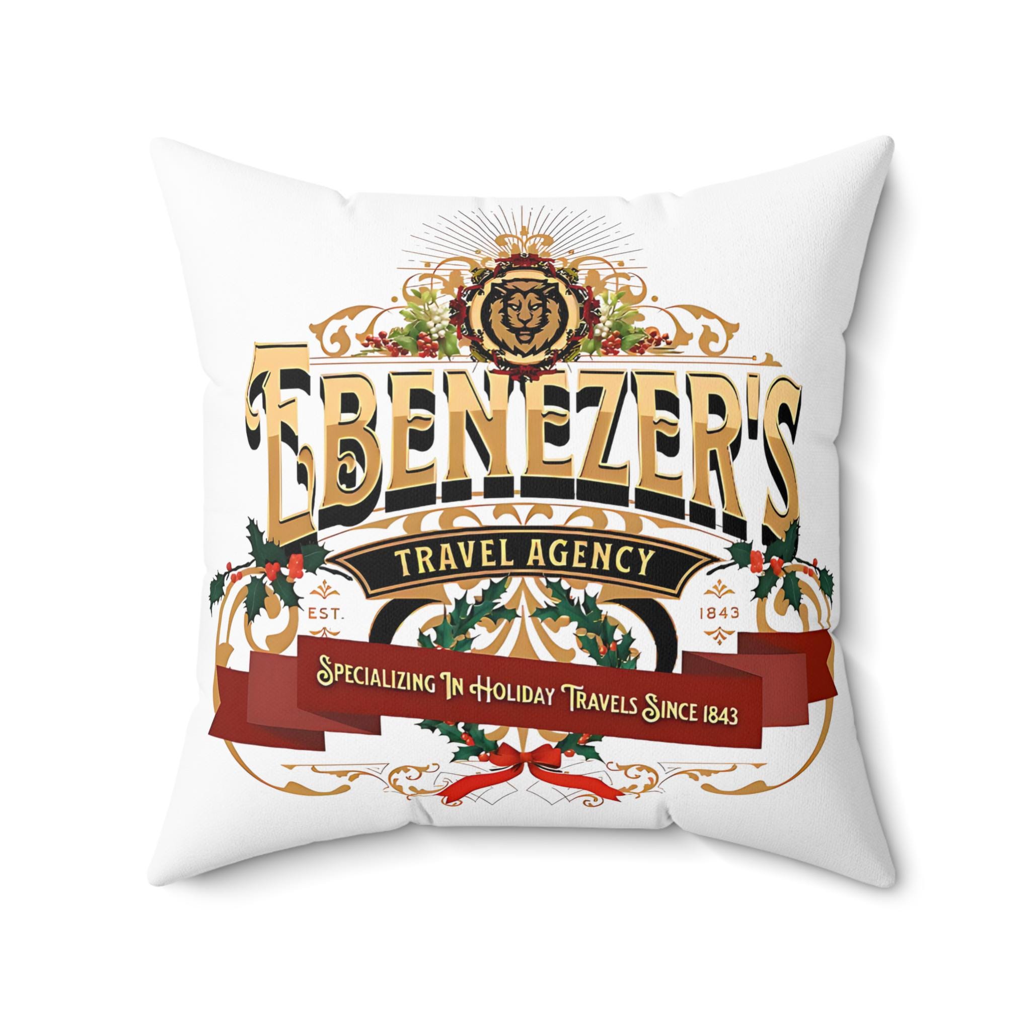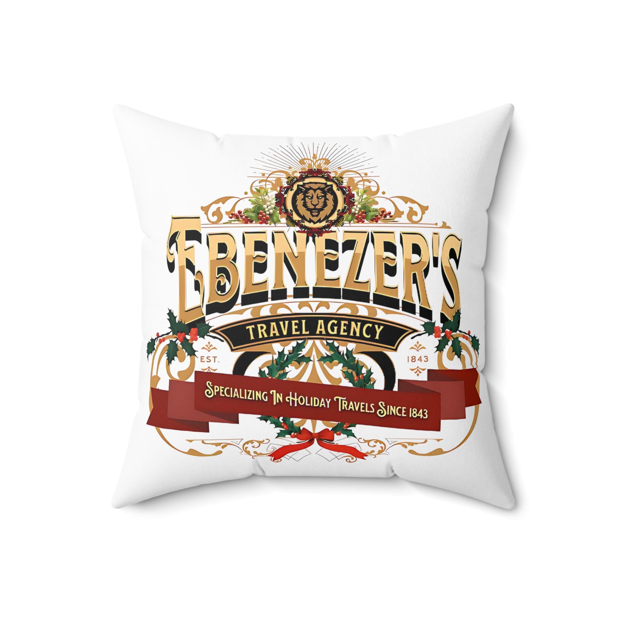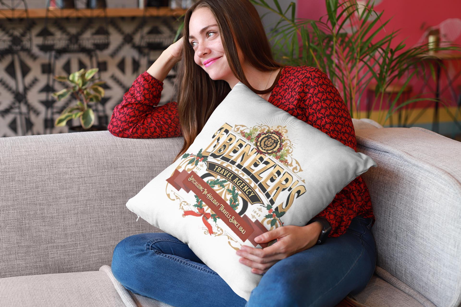 🎄 Add a touch of vintage charm to your home with our "Ebenezer's Travel Agency" Pillow! This decorative Christmas cushion is perfect for the holiday season, featuring a classic design inspired by Ebenezer's historic travels. Ideal for your living room, bedroom, or any cozy corner. Enjoy fast shipping and elevate your home decor with this unique pillow cover! Zip off pillow cover is machine washable.🎅